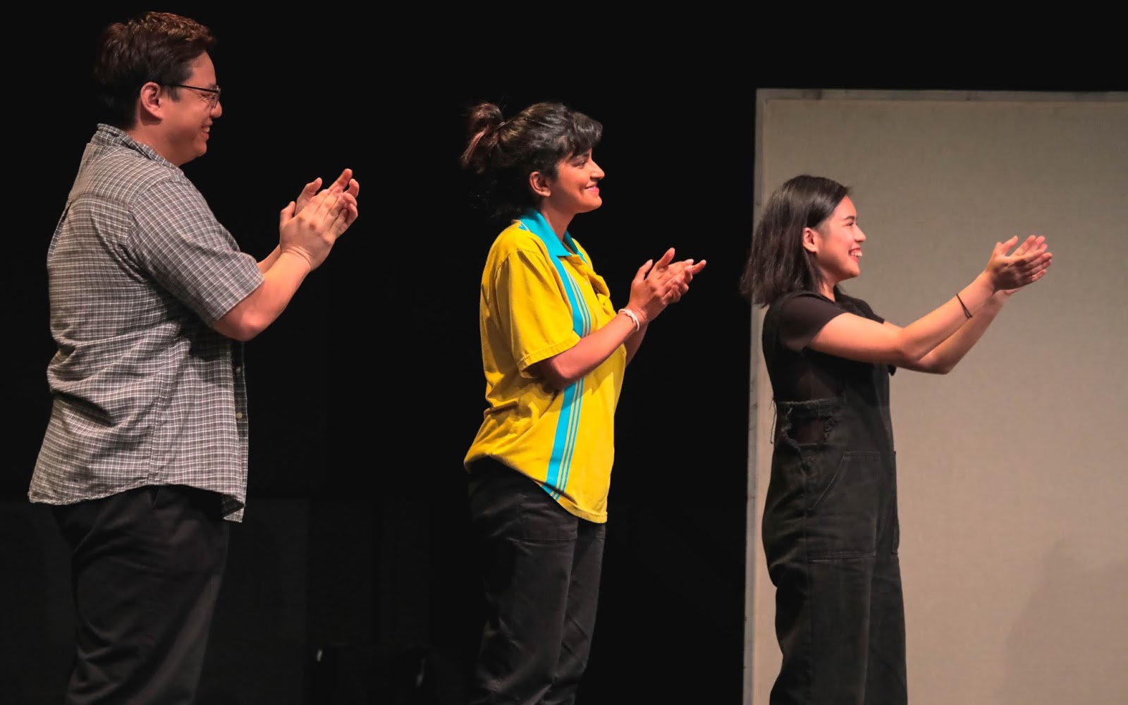《当时》缺席的人物也耐人寻味:全剧闹失踪的舞台经理(为了营造“笑”果?)、因出席国庆典礼彩排而缺席的颁奖嘉宾——剧团艺术总监、举办新加坡剧场Icon的官方。于是,呈现在舞台上拍摄宣传短片、采访获奖者、推销香薰茶包的工作人员同样来自底层——仿佛压迫底层工作人员的同样是底层工作人员。还是权威的缺席,再现官方的不重视?压迫者的缺席,再现体制的压迫?可惜《当时》没有提供更多的线索,让这样的缺席更加深刻。